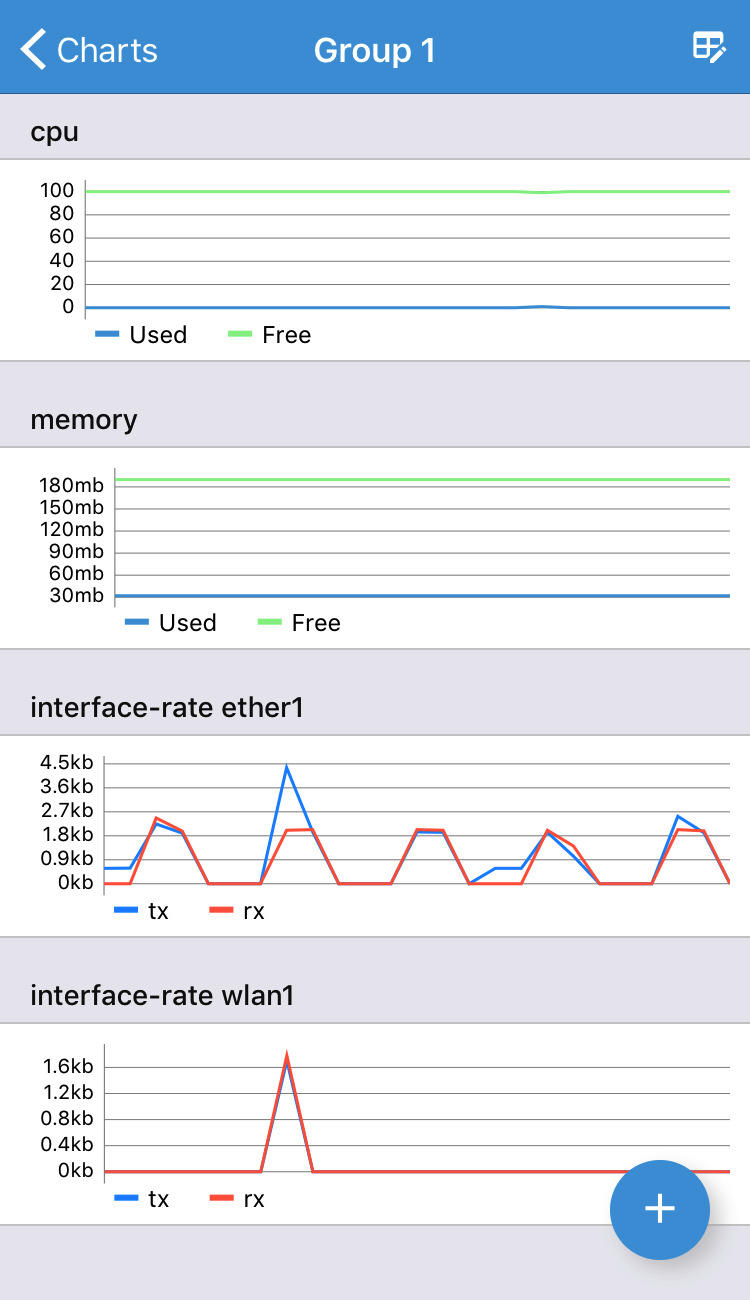 Create a chart group and add what you need. Focus on what really matters. Eg, create a group with cpu usage, memory usage, ether1 traffic rate and wlan traffic rate.